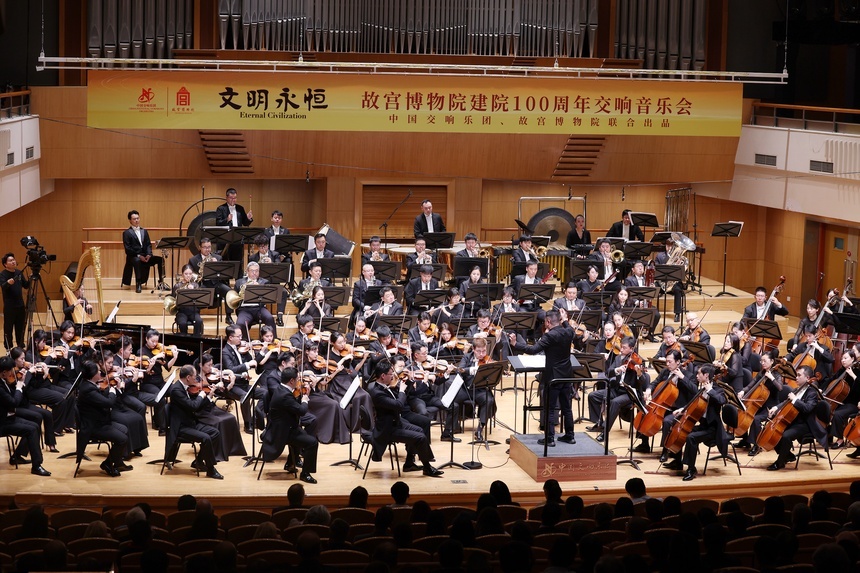 10月11日,由中国交响乐团与故宫博物院联合制作的《永恒文明·故宫博物院百周年交响乐团》在北京音乐厅成功演出。这场音乐会是为纪念故宫博物院建院一百周年而特别制作的。它由两部分组成,这将是全球首次推出。演出由胡永彦执导,唐建平作曲,康辉朗读。交响乐音乐录影带《故宫》前半部分根据纪录片《故宫》的相关部分进行了重新编排和拓展。以“时空之门”、“黎明第一缕曙光”、“瓷韵色彩”、“太和”等9个板块为脉络,通过渲染手法将故宫的空间肌理、工艺之美以及四季的风景转化为真实的音乐呈现。城市米化作可感知的旋律,让观众仿佛置身于红墙黄瓦之中,沉浸在紫禁城的历史温情之中。 《纪念故宫建院百年第三交响曲》后半段超越具体场景,通过《千风》、《时光与花》、《祝福之风》、《文明永恒》四个乐章,将故宫置于中华民族伟大文化体系之中,以音乐哲学思想升华人文精神。其和声语言将当代的张力与传统五声音阶风格的温暖融为一体,实现了民族精神与交响艺术的深刻融合。从纪录片《故宫》的经典旋律到百年新交响乐,本场音乐会将通过完整的音乐史,让观众在音乐中感受到中华文明的悠久历史和活力。