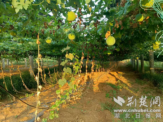 太阳能电池板下面的树枝上挂满了水果。图片提供:通讯员