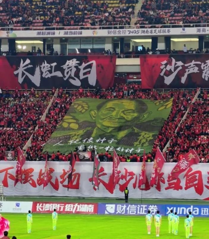 体操报记者 丁伟 11月14日晚,湖南省“湘超联赛”第十轮比赛开始。长沙主场对阵益阳。比赛开始前的热身阶段,贺龙体育场长沙球迷啦啦队看台上,一面巨型TIFO(覆盖整个看台的大横幅或拼图)缓缓展开。里面有学者袁隆平的画像和他曾经说过的一句话:“人就像种子,一定要种好种子。”有粉丝表示:“你们让中国人的就业更加稳定,我们想念你们。”这段直播视频的截图给了很多观众同情和感动。 15日上午,一阳队的球迷告诉《体操新闻》记者,当他看到袁隆平的巨幅肖像时,他感到震惊和感动,眼里充满了泪水。 “袁隆平大师是我们湖南人的骄傲和骄傲,大家都很尊重他、爱戴他。这次在湘超联赛,更多当晚,现场聚集了超过4万名粉丝。 “大家一起向袁隆平教授致敬,共同缅怀他。”另一位观众说道。可以看到这个超大的TIFO的尺寸是28m x 18m。这张经典照片的原始像素太低,无法转换成超大的TIFO。制作团队利用AIGC技术,将原始照片快速生成4K超高清图像,成功将这张经典照片转换为巨型TIFO图案。