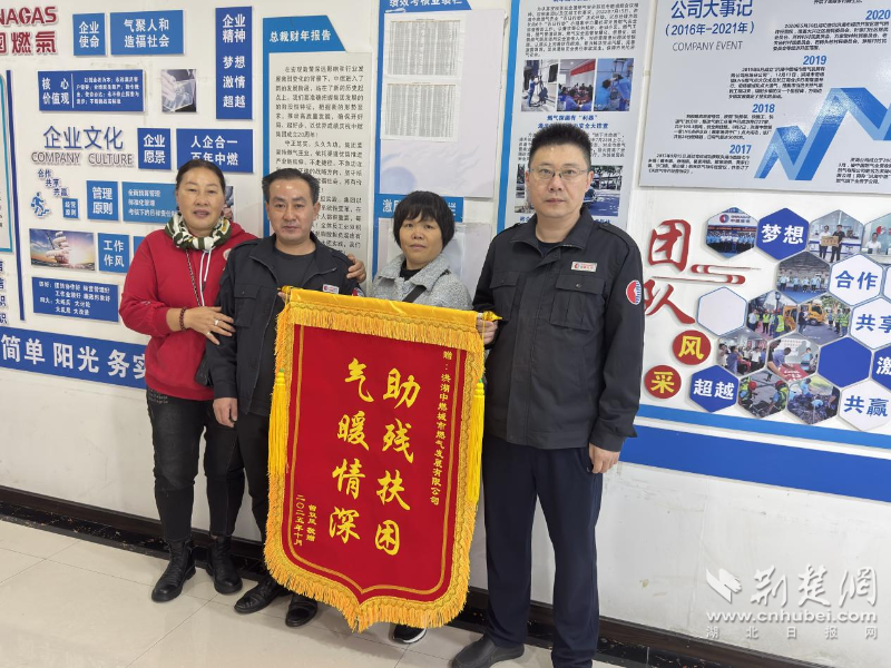 京中网(湖北日报)讯(通讯员 丁艳)近日,洪湖市民曾双峰专程来到洪湖中蓝城市燃气发展有限公司,将横幅交到了工作人员手中,上面写着:“扶残扶贫,深爱燃气供暖”。他感谢公司免费安排燃气表搬迁,解决了实际困难。