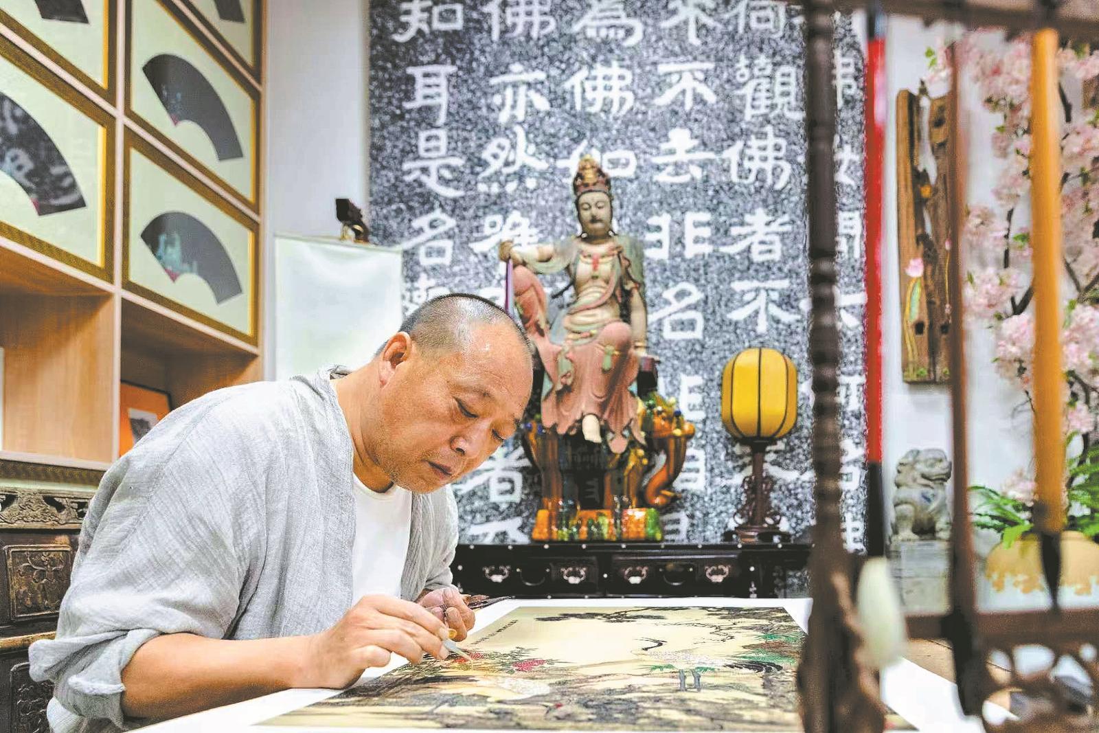 12月23日,记者在南毛的画室里欣赏了数百幅他的画作,从中国复古风到时尚潮流,应有尽有。他告诉记者,该公司的作品目前分布在全国90%以上的软毛漆市场,为超过40万个家庭创造了独特的生活记忆。他的人生轨迹表明,最传统的技能隐藏着最新的商机。