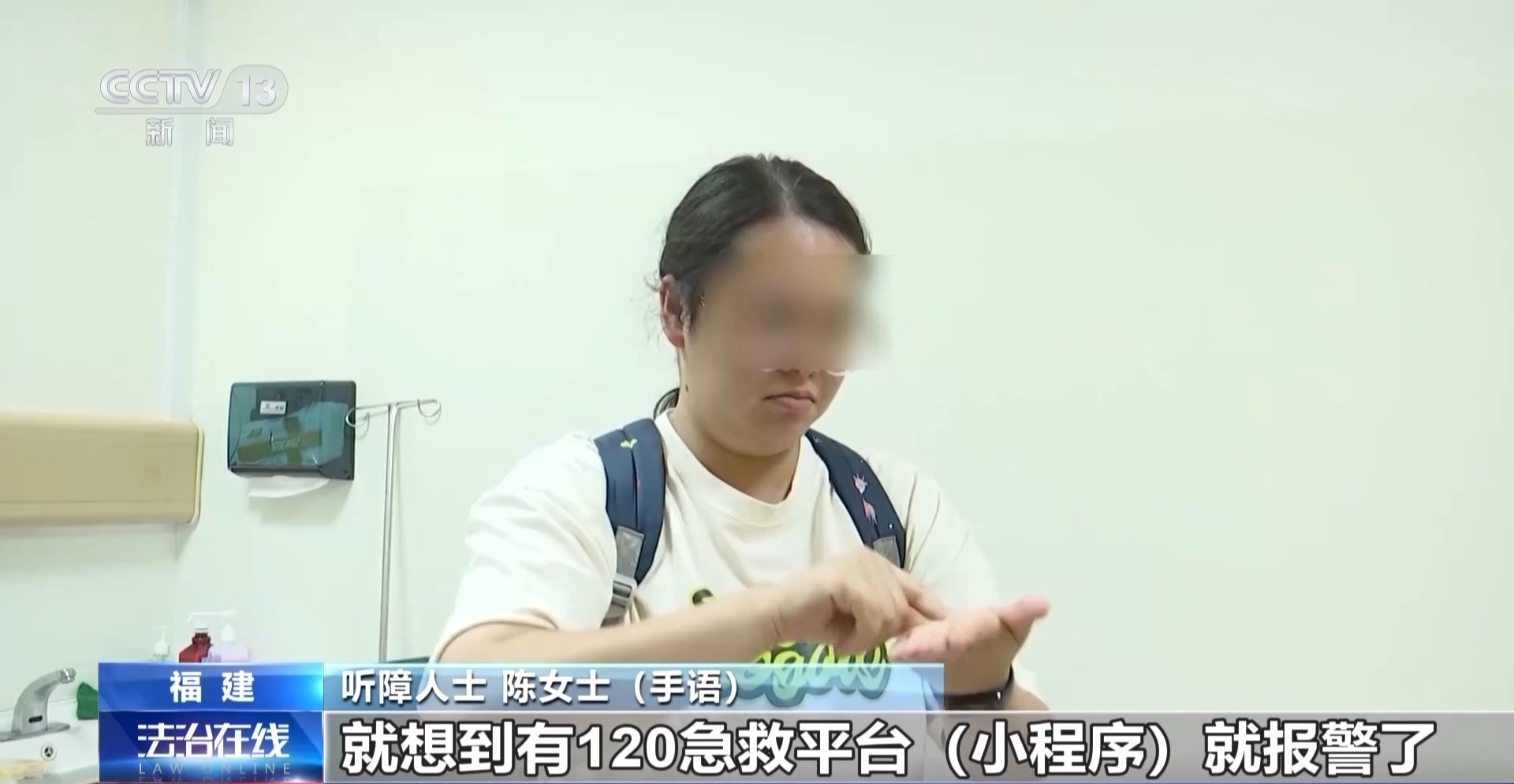 聋哑陈先生(手语):当时我丈夫晕倒了。我又担心又惊慌,就想起了应急平台小程序120,报了警。