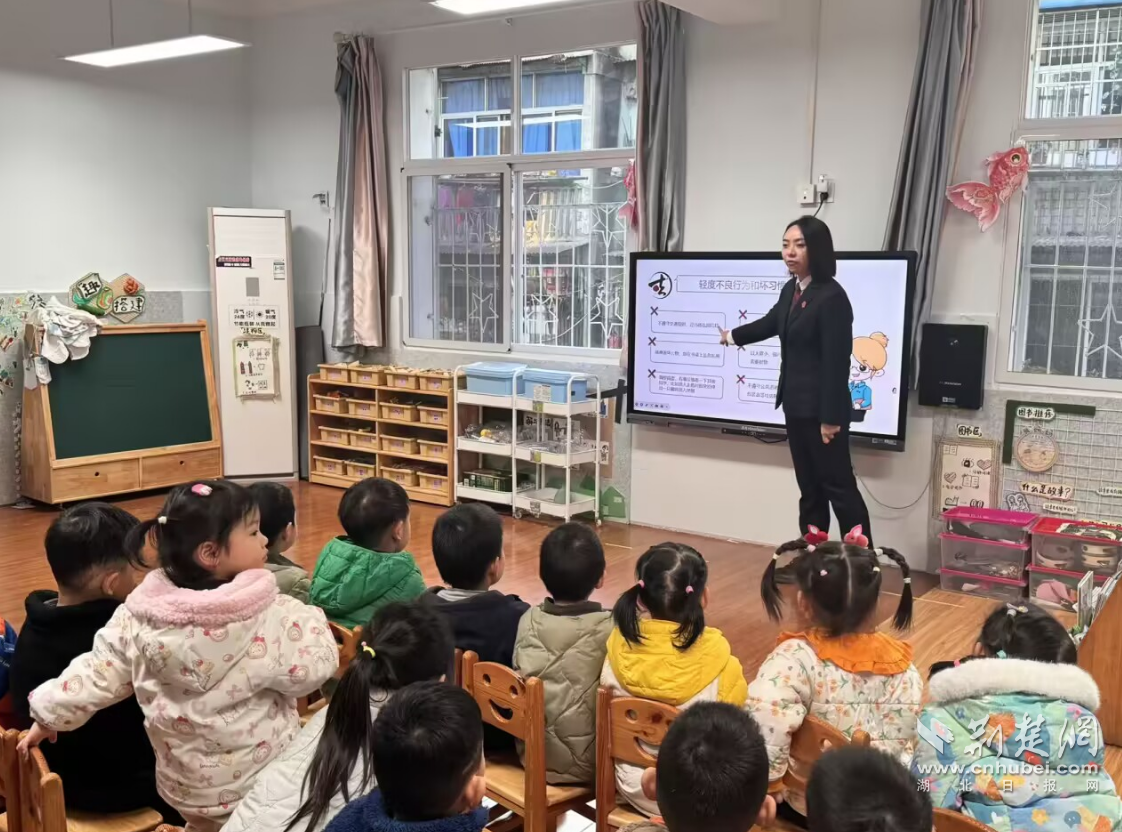 新京报网(湖北日报网)讯(记者何鹏、通讯员张晓敏)为引导孩子初步树立法治意识,我们建立了家庭社区共同育人的法治教育模式。 12月4日,江汉区小精灵幼儿园特邀曹老师